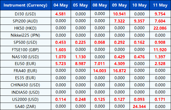 Please be advised that the dividends of the following index CFDs will be adjusted by upcoming ex-dividend dates. The comment for trading index CFDs will be in the following format “Div&<Product Name>&<Net Volume>” which show in the balance after the close of the day before the dividend payment date.