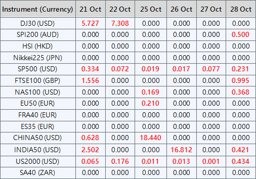Please be advised that the dividends of the following index CFDs will be adjusted by upcoming ex-dividend dates. The comment for trading index CFDs will be in the following format “Div&<Product Name>&<Net Volume>” which show in the balance after the close of the day before the dividend payment date.