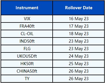Please be advised that the following CFD instruments will be automatically rolled over as per the dates in the table below. As there can be a pricing difference between old and new futures contracts, we recommend clients to monitor their positions closely and manage positions accordingly.