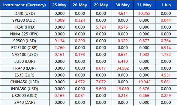 Please be advised that the dividends of the following index CFDs will be adjusted by upcoming ex-dividend dates. The comment for trading index CFDs will be in the following format “Div&<Product Name>&<Net Volume>” which show in the balance after the close of the day before the dividend payment date.