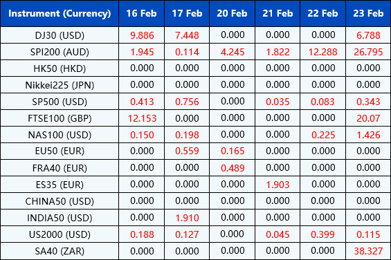 Please be advised that the dividends of the following index CFDs will be adjusted by upcoming ex-dividend dates. The comment for trading index CFDs will be in the following format “Div&<Product Name>&<Net Volume>” which show in the balance after the close of the day before the dividend payment date.